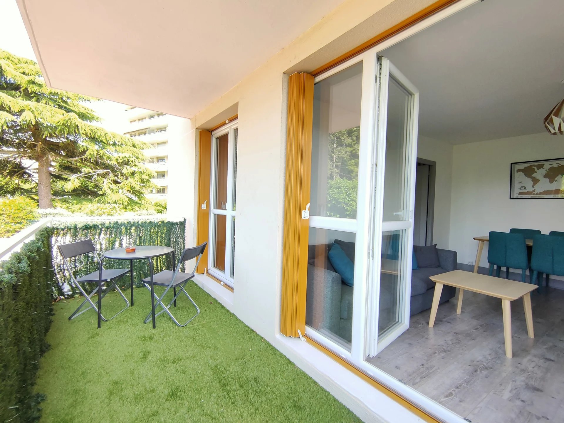 SAINT-GERMAIN-EN-LAYE - Croix de Fer neighbourhood / International School - In a luxury residence WITH OUTDOOR SWIMMING POOL, GREEN SPACES and CARETAKER - WATER AND HEATING INCLUDED - Renovated 2-room apartment of approximately sqm on the 1st floor comprising: Entrance hall with cupboard, living room with balcony, separate fitted and equipped kitchen, separate toilet, bathroom, bedroom with large cupboard and outdoor parking. Close to the Lycée International. Bus stop for the city centre at the foot of the building. Fees payable by the tenant depending on the type of lease: lease for a natural person's main residence: €765. In the case of a civil code lease (company lease): 14% including VAT of the annual rent, charges included. EXCLUSIVE VIEWING WITH L'AGENCE INTERNATIONALE !